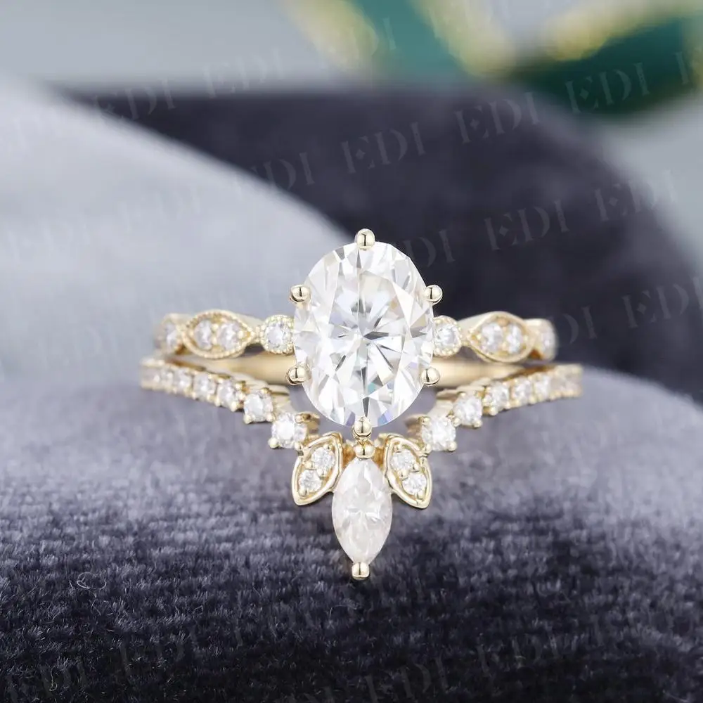 Edi Oval Cut Moissanites Engagement Ring 14k Bridal Set Wedding Band Vintage Unique Antique Promise Diamond Ring For Women Rings Aliexpress