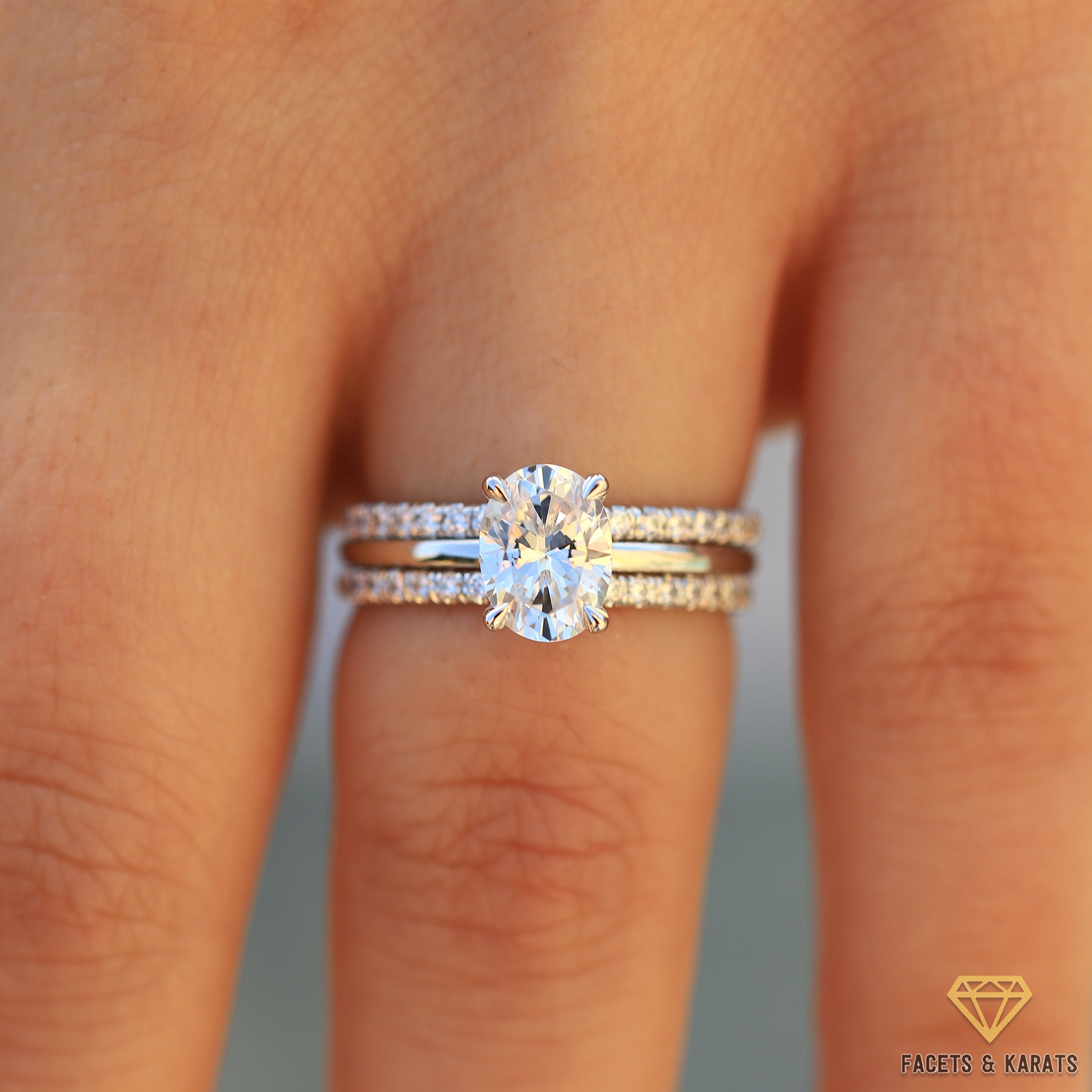 When stacked it looks like your. Natural Diamond Oval cut. Sterling Silver Center 5ct 9X11mm G-H-I Color Emerald Shaped Moissanite Hidden Halo Engagement Ring Curved Enhancer Guard Wedding Band Bridal Set with accents for.